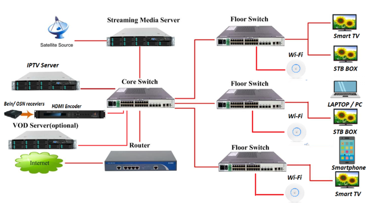 - VOD, CCTV , local channels and more can be connected to system(optional).